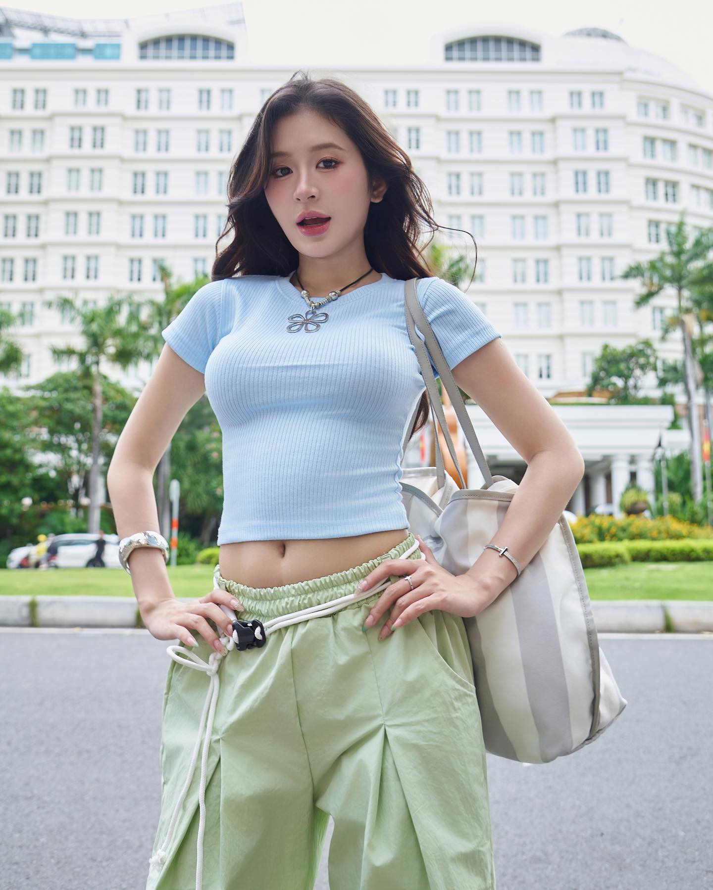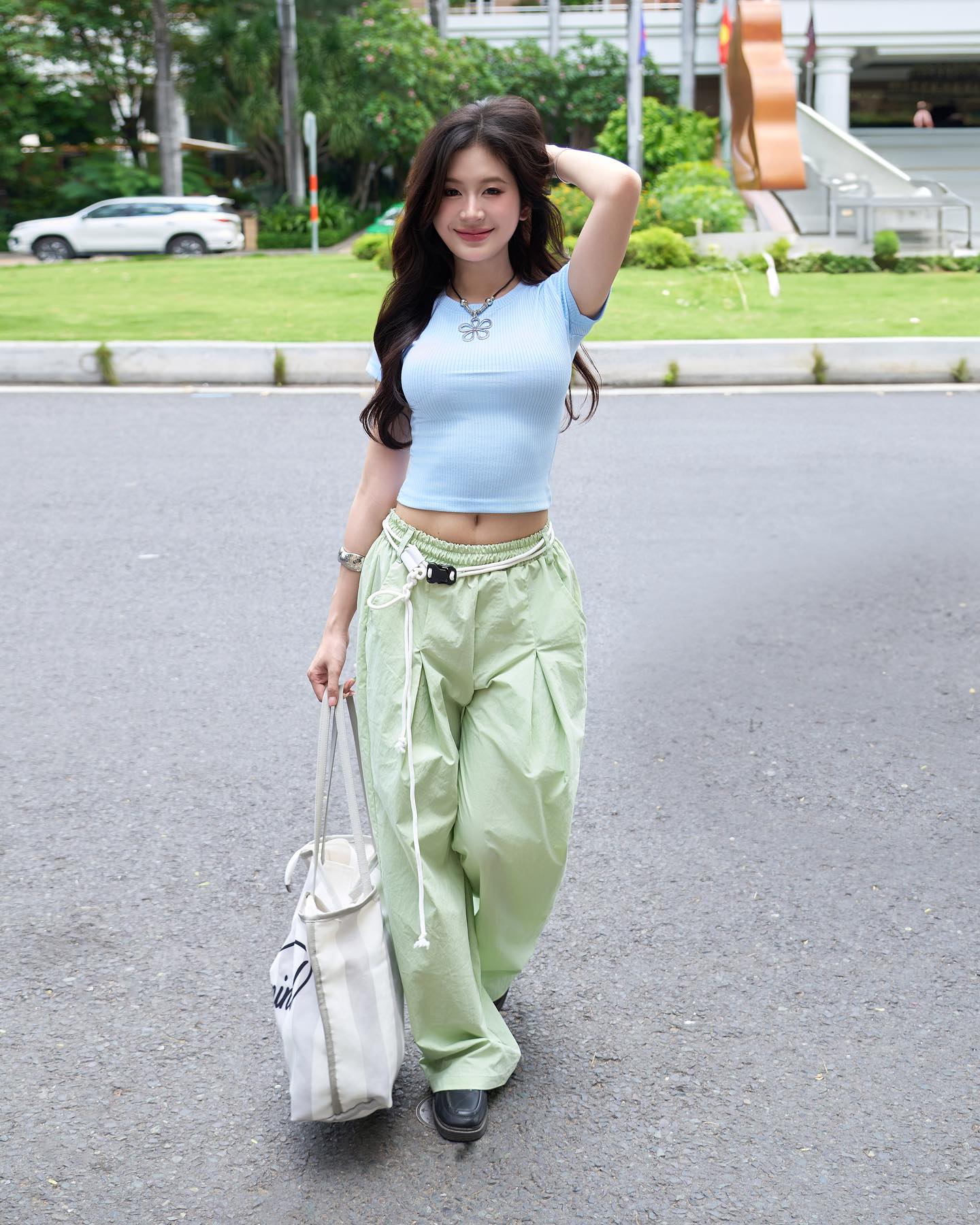 Blue Crop Top & Mint Pants – Fresh Urban Look